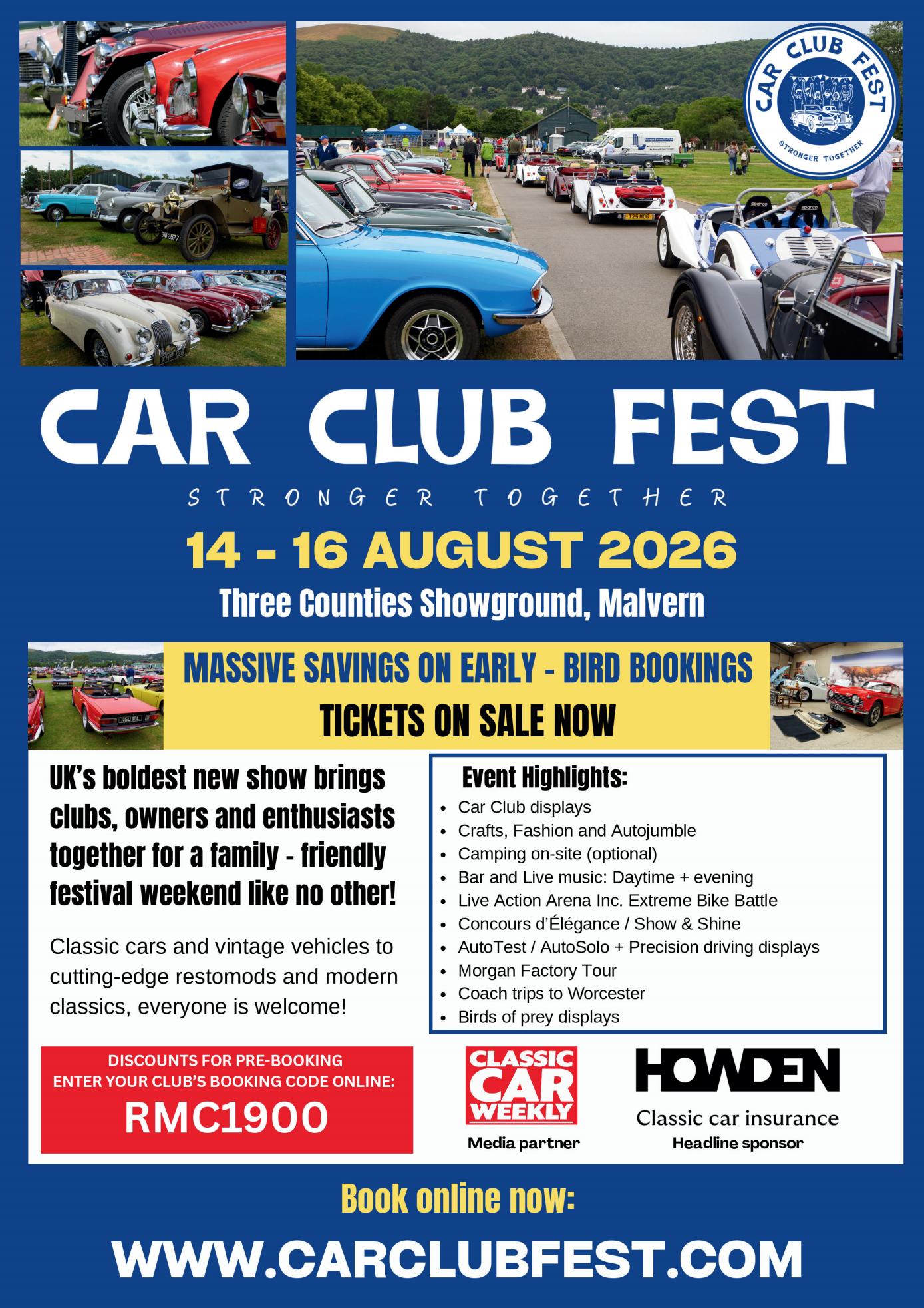 Tickets went on sale on 31st January 2026, so with significant early-bird savings available using your club booking code, you should not delay and book now to ensure your place on the club stand for the cheapest possible ticket price. With three days of displays, motorsport, shopping and live entertainment on offer, Car Club Fest promises a relaxed, inclusive and thoroughly sociable way to celebrate car clubs and car culture.